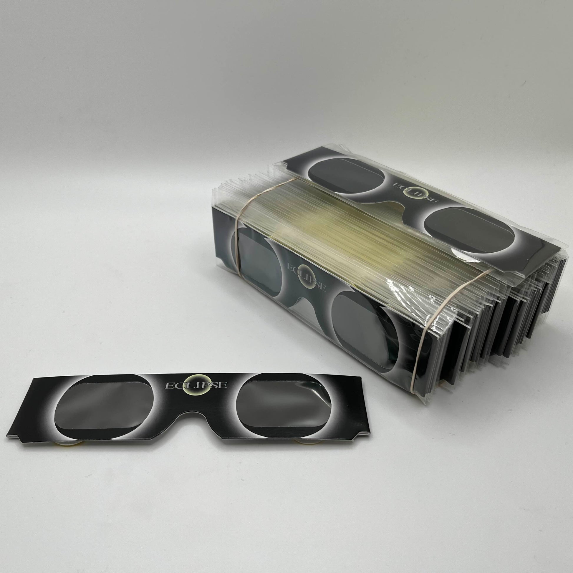 Solar eclipse glasses wholesale orders can be placed in amounts from 50 up to several thousand solar viewers.